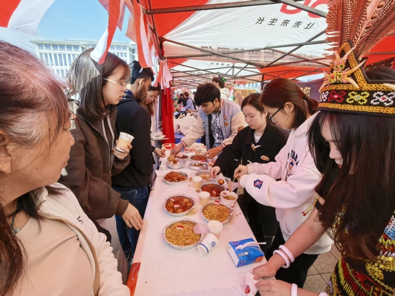 In the food tasting area, our university’s Indonesian specialties—Indomie Mi Goreng (fried noodles) and stuffed tofu—won wide acclaim. The freshly fried tofu had a crispy exterior and tender interior, while the noodles were aromatic and flavorful, becoming a site highlight. Teachers and students queued up to taste them, making our exhibition area one of the most popular food zones.